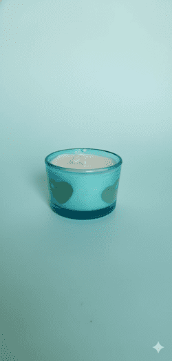 Q: What is a Blue Frosted Glass Candle with Heart Shapes?