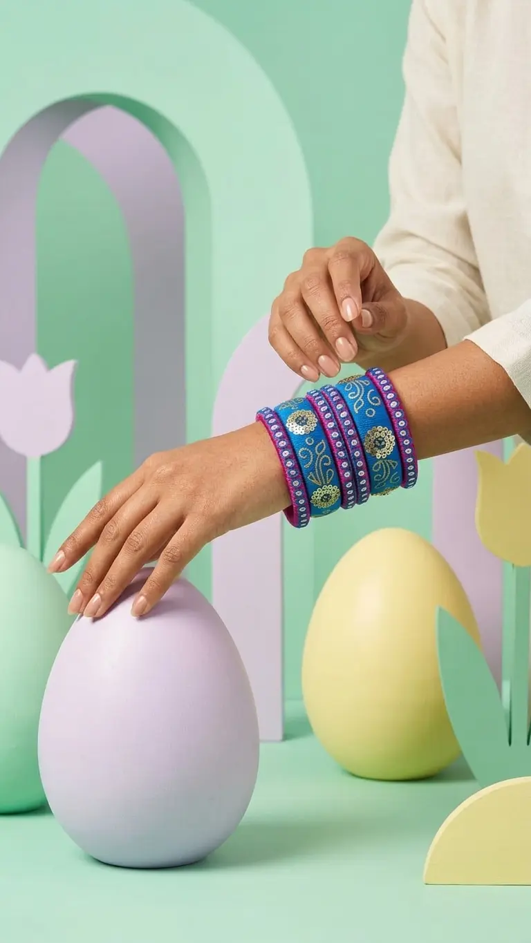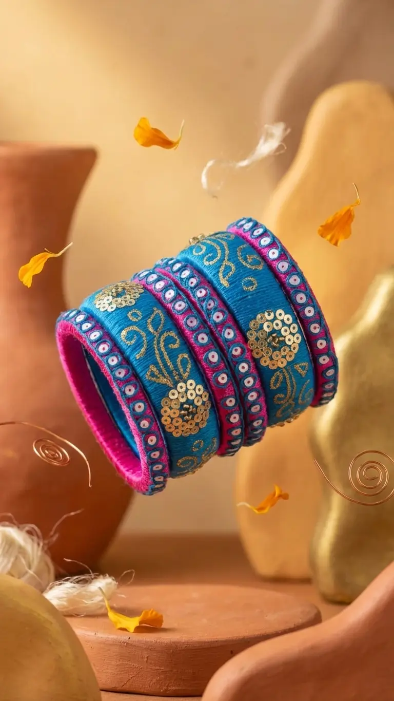 - Material: Silk Thread, Fabric Base, Sequins, Beads