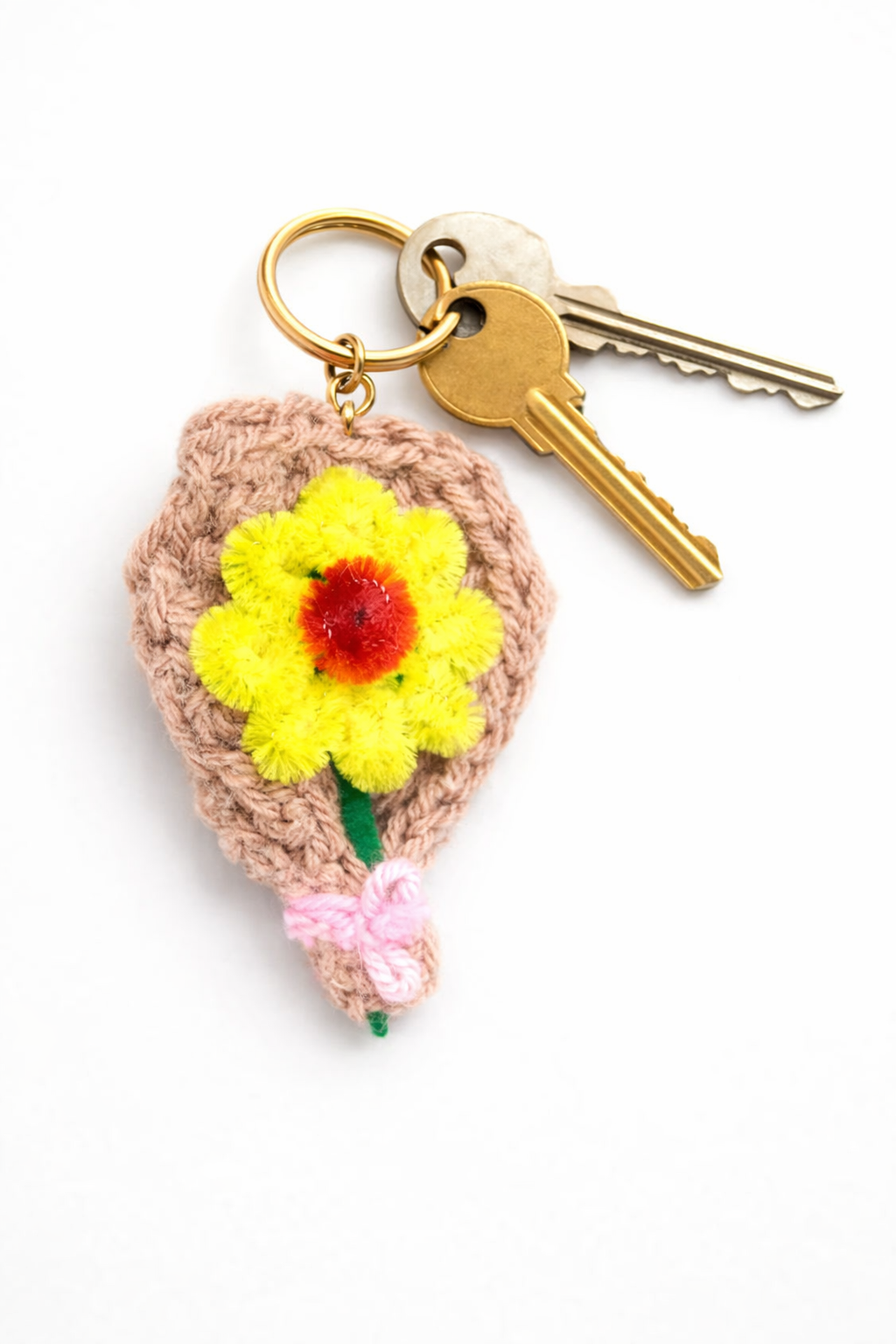 🌸 Handmade Crochet Design – Yarn-crafted floral keychain with pom-pom flower detailing