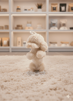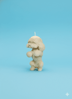 A dog-shaped scented wax candle is a handcrafted decorative candle sculpted to look like a cute puppy, made with scented wax that releases a mild fragrance.