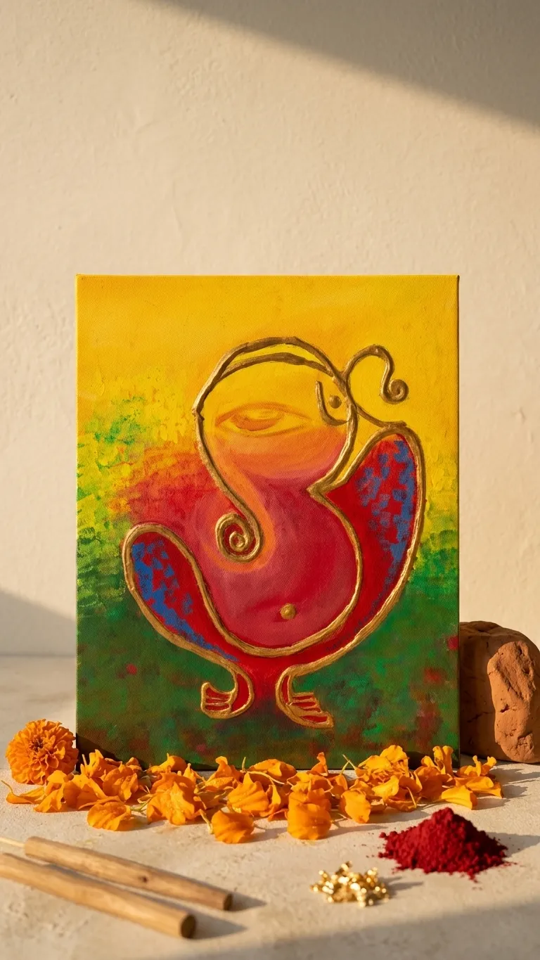 Ganesha Acrylic Canvas Painting | 16×20 Inch Wall Art Mounted on Hardwood | Spiritual Home Decor