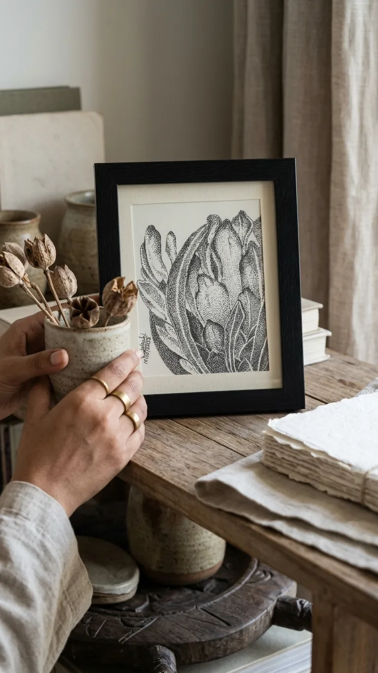 Handcrafted Botanical Line Art Wall Frame Minimalist Nature Sketch Decor Black & White Handmade Wall ArtHandcrafted Botanical Line Art Wall Frame | Minimalist Nature Sketch Decor | Black & White Handmade Wall Art