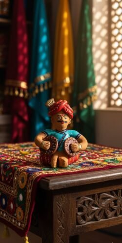 This beautifully handcrafted Terracotta Rajasthani Musician Figurine captures the charm and elegance of Rajasthan’s rich folk culture. The figurine features a traditionally dressed musician wearing a vibrant turban, seated with a classic Rajasthani musical instrument. Each detail—from facial expressions to outfit patterns—is carefully hand-painted by skilled artisans.