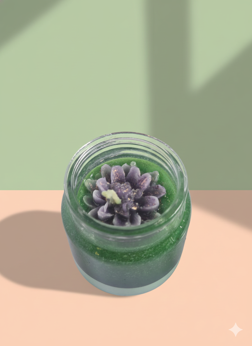 A layered gel and wax botanical candle is a decorative scented candle made using a wax base and a transparent gel top infused with botanical elements. It creates a fresh, natural décor look and delivers a mild, soothing fragrance.