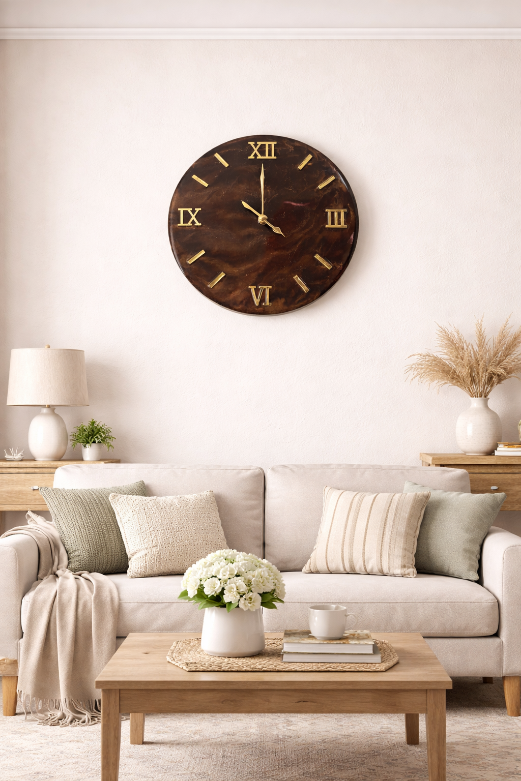 Handmade resin wall clock with marble-effect design
