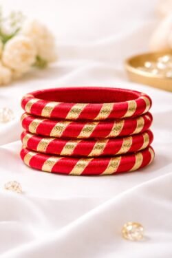 Attribute Details Material Silk Thread + plastic Base Color Red with Gold Spiral Detailing Size 2.4 Quantity Set of 4 Suitable For Women & Girls Occasion Wedding, Festivals, Parties, Gifting FAQ: