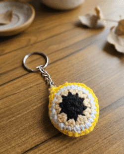 It is used as a keychain or bag charm for decorative and everyday use.Q2. Is this keychain handmade?