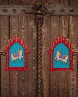 The design reflects heritage Rajasthani art style, making it a perfect addition to home entrances, pooja areas, verandas, corridors, and ethnic interiors. Ideal for those who love traditional décor, this set complements wooden doors and neutral walls exceptionally well.